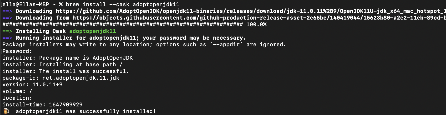 brew install --cask adoptopenjdk11로 하면 해결된다고 해서 해봤으나..