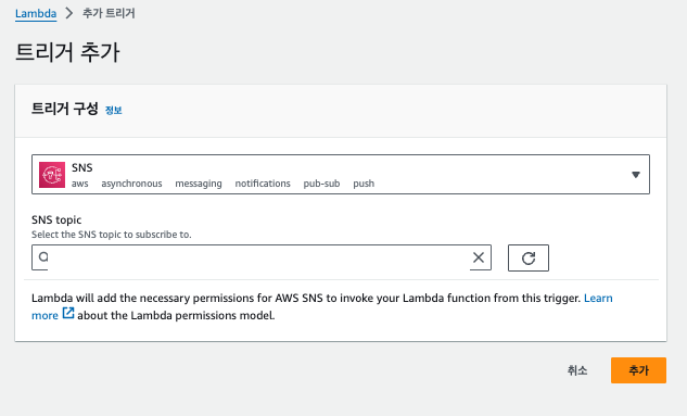sns 트리거 추가