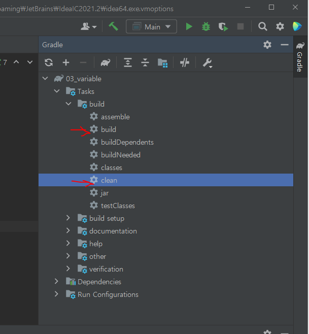 ※ gradle -> build -> clean 더블클릭 -> build 더블클릭